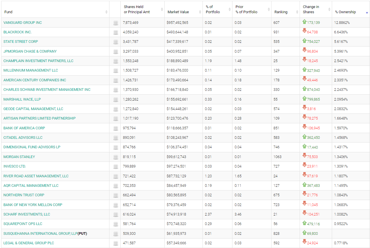 보시는 바와 같이 대부분의 투자회사들이 투자하여 보유 중이며 개인 포트폴리오 구성하실 때 적당 부분 투자하시는 것이 좋을 것으로 보입니다.