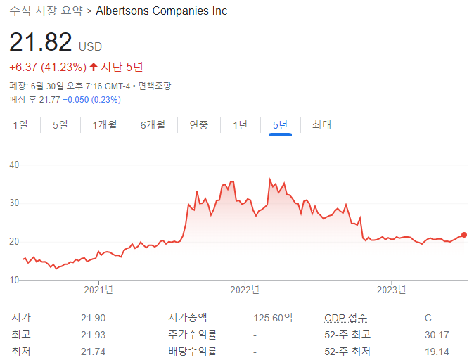 Albertsons Companies Inc는 미국 주식 시장에서 거래되고 있으며, 뉴욕 증권거래소 (New York Stock Exchange)에서 "ACI"라는 종목 심볼로 거래됩니다.