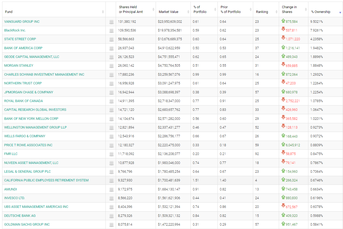 보시는 바와 같이 대부분의 투자회사들이 투자하여 보유 중이며 개인 포트폴리오 구성하실 때 적당 부분 투자하시는 것이 좋을 것으로 보입니다.