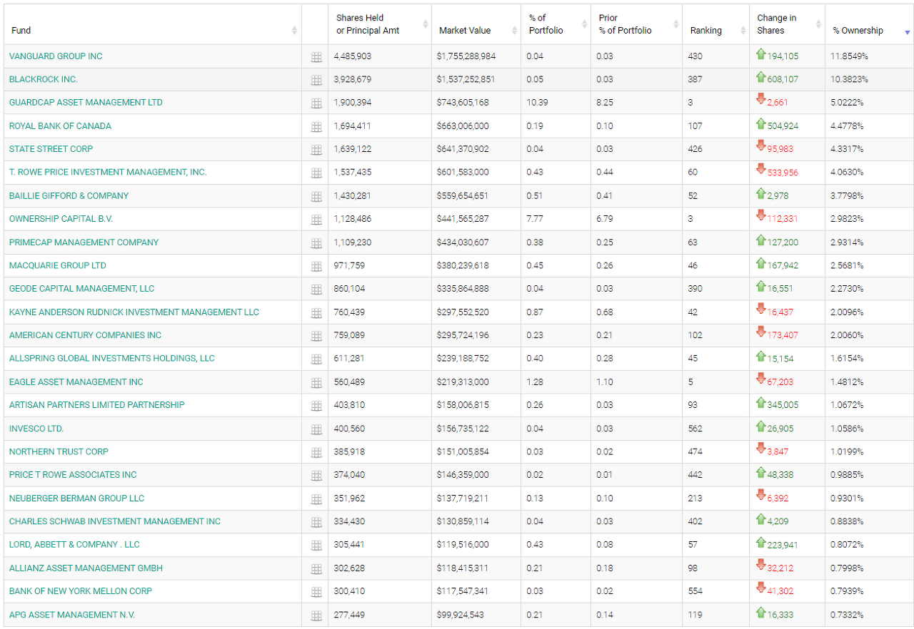 보시는 바와 같이 대부분의 투자회사들이 투자하여 보유 중이며 개인 포트폴리오 구성하실 때 적당 부분 투자하시는 것이 좋을 것으로 보입니다.