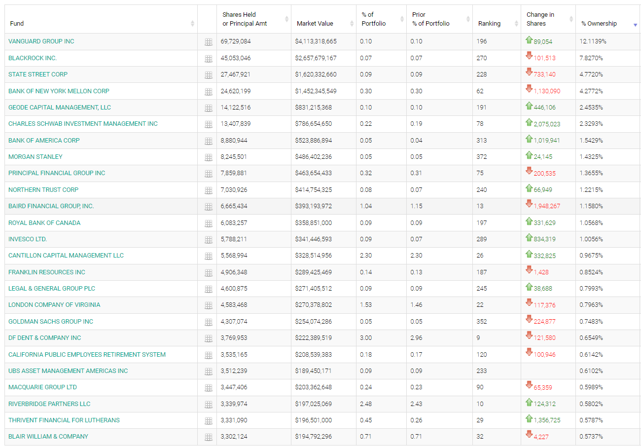 보시는 바와 같이 대부분의 투자회사들이 투자하여 보유 중이며 개인 포트폴리오 구성하실 때 적당 부분 투자하시는 것이 좋을 것으로 보입니다.