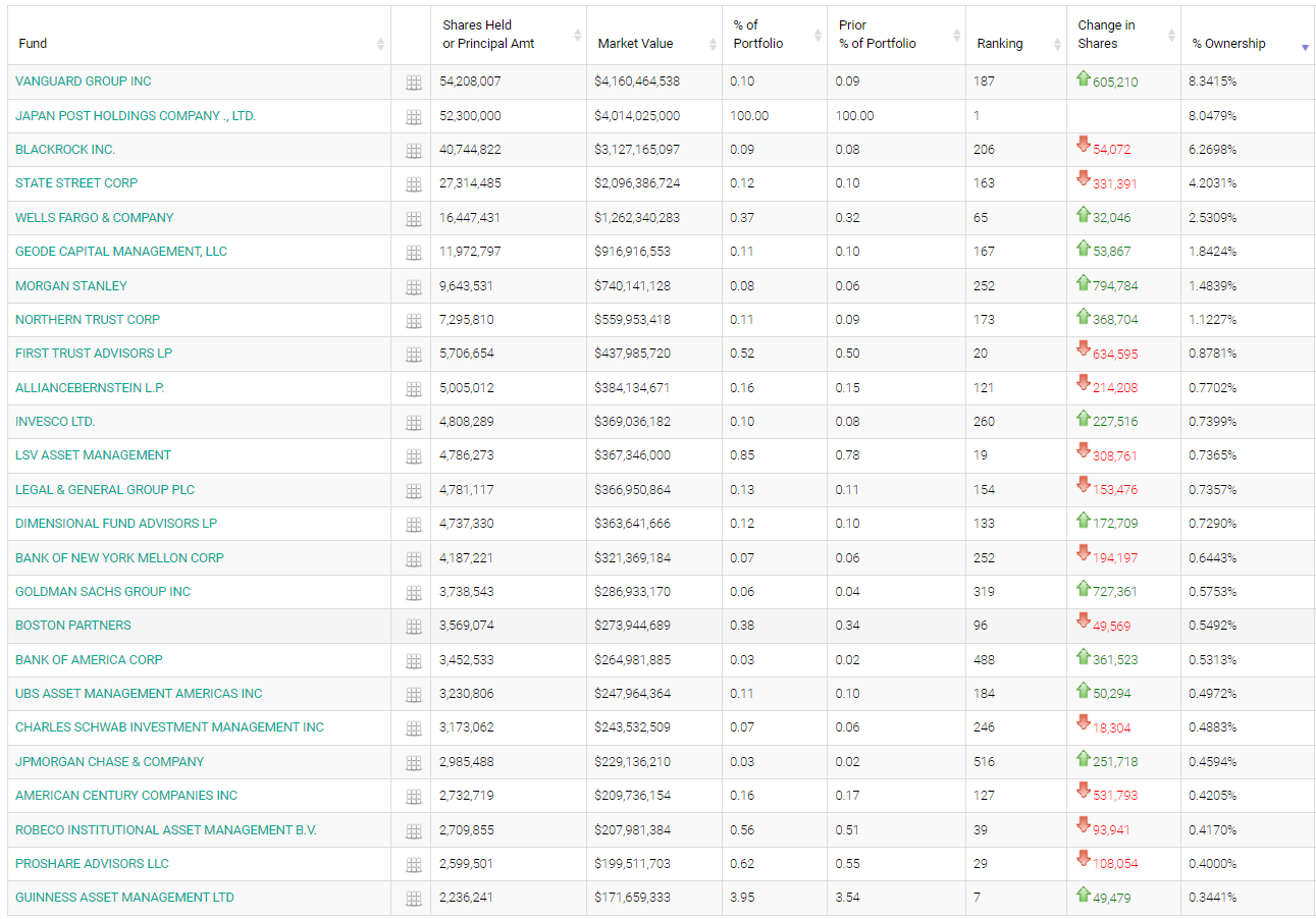 보시는 바와 같이 대부분의 투자회사들이 투자하여 보유 중이며 개인 포트폴리오 구성하실 때 적당 부분 투자하시는 것이 좋을 것으로 보입니다.