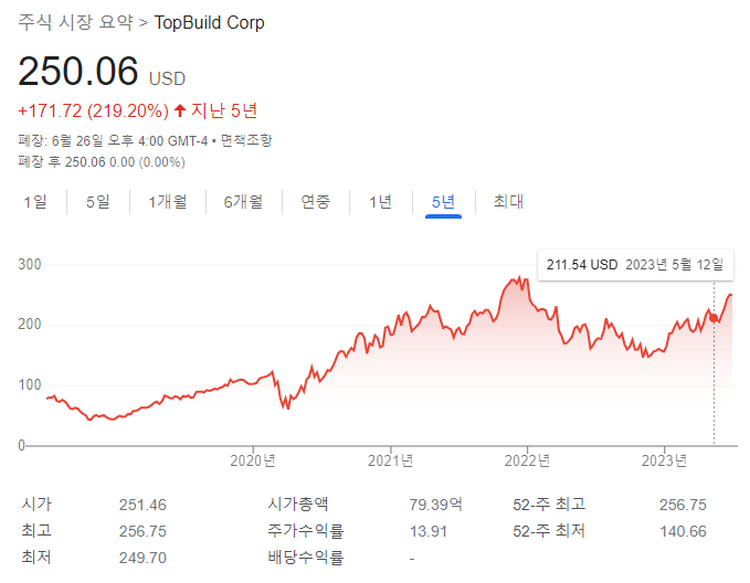 TopBuild Corp는 fortune 500에서 647번째 회사입니다. 현재 지속적으로 수익을 내는 업체이며 매출 또한 계속 성장 중에 있습니다.