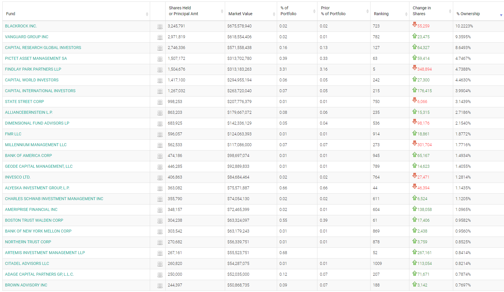 보시는 바와 같이 대부분의 투자회사들이 투자하여 보유 중이며 개인 포트폴리오 구성하실 때 적당 부분 투자하시는 것이 좋을 것으로 보입니다.